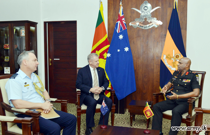 The newly-appointed High Commissioner of Australia for Sri Lanka, His Excellency David Holly on Monday (13) paid a courtesy call on Lieutenant General Mahesh Senanayake, Commander of the Army and shared views on several matters of bilateral relevance.