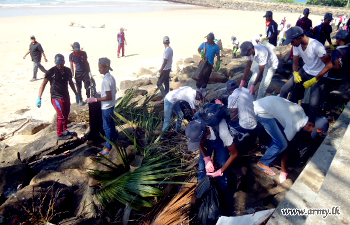 A group of more than 100 Army personnel of the 581 Brigade under the 58 Division contributed to a beach cleaning project by the side of the Galle township on an initiative made by the Diocese of Galle and Ven Kanumuldeniye Chandawimala Thero of Galle Kadawathsathara, Lekakadhikari Sasanarakshaka Balamandalaya on Sunday (23).