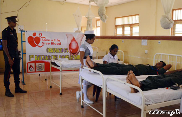 79 Army personnel including 8 Officers volunteered to offer their blood gratis to patients in Kilinochchi on Monday (18) after the Blood Bank at Kilinochchi Hospital turned to the troops for assistance. The blood donation, organized at Mankulam Hospital premises by troops of the 3 Gajaba Regiment of the 57 Division...