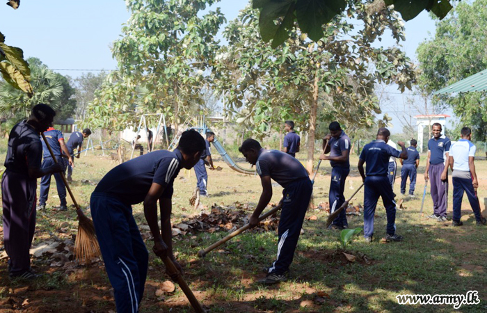 A group of Army personnel of the 10 Sri Lanka Light Infantry (SLLI) Regiment of the 653 Brigade under the 65 Division of the Security Force Headquarters – Kilinochchi (SFHQ-KLN) at the request of Palinagar Thamil Alagan pre-school volunteered to clean the premises for the benefit of kids learning there.