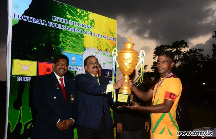 22 Division footballers of the Security Force Headquarters – East (SFHQ-E) competing in the Security Forces - East Inter Division Football Finals – 2018 emerged victorious, defeating 23 Division team for 3-0 during the finals at the 22 Division grounds in Trincomalee on Wednesday (13).