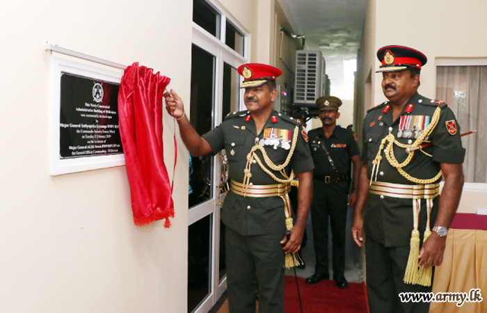 Major General Sathyapriya Liyanage, Commander Security Forces - West as the Chief Guest on Tuesday (12) opened the 58 Division's newly-erected conference hall in the premises during a simple ceremony at the invitation of Major General Sudath Perera, General Officer Commanding 58 Division. A brief religious ceremony blessed the project before the Chief Guest unveiled a plaque and opened it.