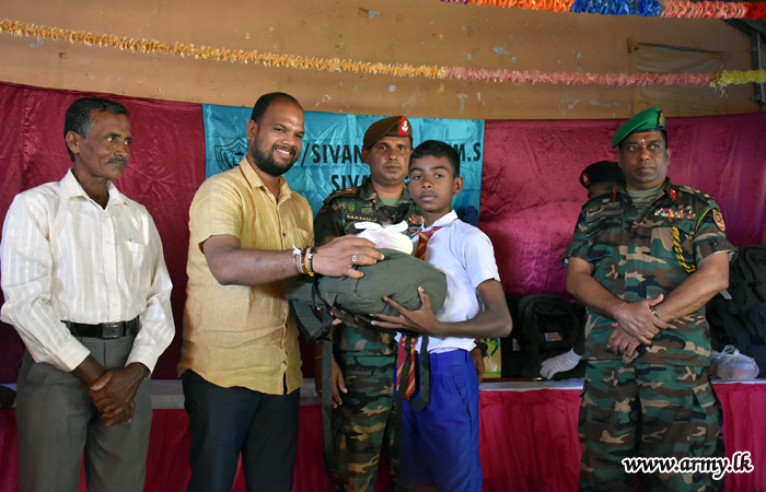 Pooneryn-based 66 Division Headquarters of the Security Force Headquarters - Kilinochchi (SFHQ-KLN), following generosity provided by Kurunegala Businessmen’s Association and the donor, Mr. Suresh Skandarajah on Sunday (6) gave away a large stock of school accessories...