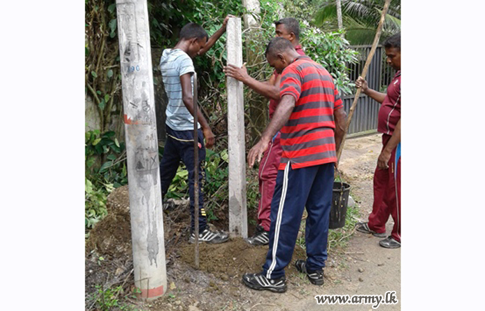 16 & 3 (Volunteer) Gemunu Watch (GW) troops under command to the 58 Division during 6-7 December assisted the constructions of a perimeter fence around Panagamuwa Amarasinghe Vidyalaya in Wanchawala. Troops of 16 GW constructed the safety fence which is 500 m in length.