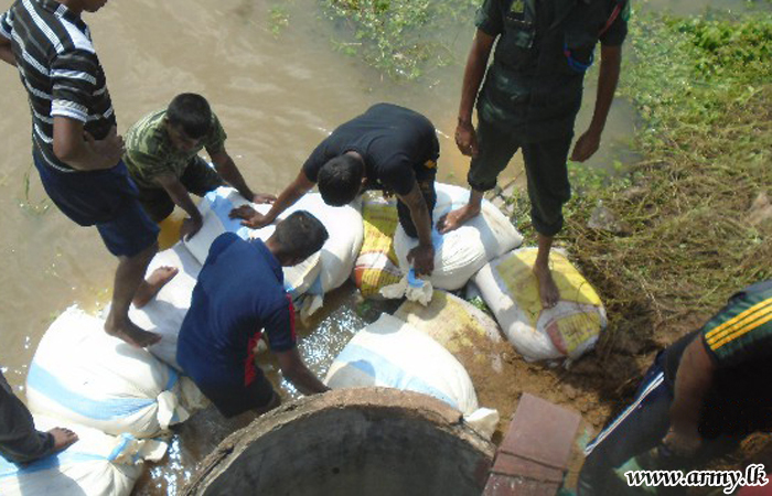 Barely a few hours after the same 20 Sri Lanka Sinha Regiment (20 SLSR) troops of the Security Force Headquarters - Wanni prevented a major disaster attending to a leakage on the Nedunkerni tank bund, another group of soldiers with the support of civilians plastered a split on time....