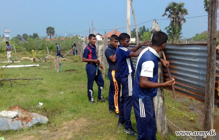 At the request of school authorities, 19 Sri Lanka Light Infantry (SLLI) Regiment offered their assistance to restore the barbed wire perimeter fence at Thewanpiddy Roman Catholic Tamil Mixed School in Kilinochchi District. A group of 16 Army personnel on the directions...