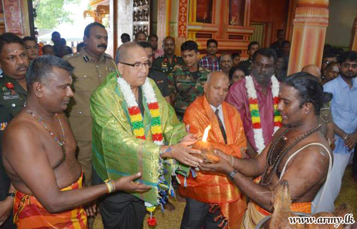 Army personnel of the Security Force Headquarters - Wanni (SFHQ-W) along with members of the Tamil community in Vavuniya joined a special Hindu religious ‘Pooja’ at Sri Kandasamy Kovil, Vavuniya to mark the Deepavali festival on Tuesday (6).