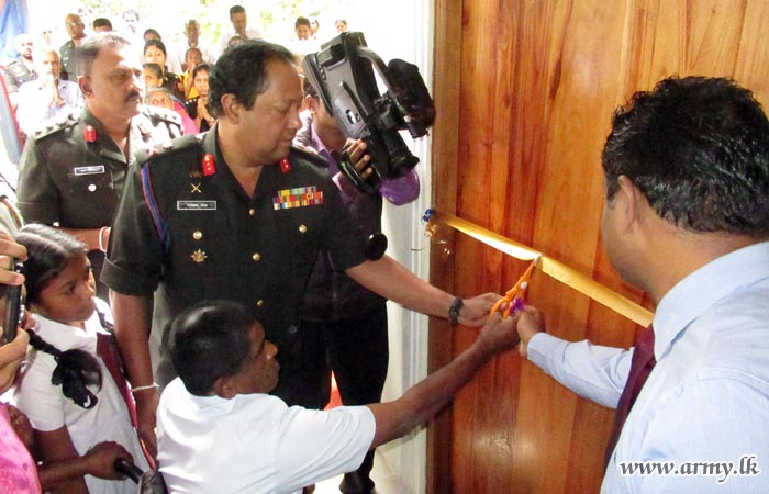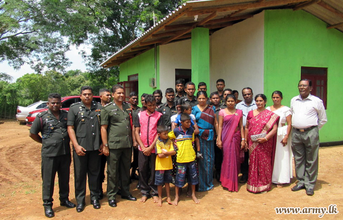 Centre for Army Vocational Training of the Army (CAVT) - Kala Oya, responding positively to a request submitted by the Rajanganaya Pradeshiya Sabha (RPS) offered its technical support for construction of a new house, meant for a poor family with five children.