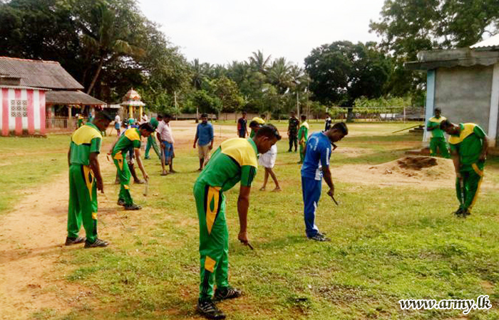 Troops of the 11 Gajaba Regiment (GR) under command to the 651 Brigade of the 65 Division at the Security Force Headquarters - Kilinochchi (SFHQ-KLN) at the request of authorities cleaned the Mulankavil Vishnu Kovil premises in Kilinochchi on Saturday (20).