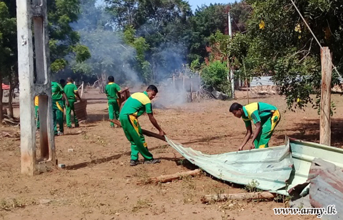 Troops of the 10 Sri Lanka Light Infantry Regiment and 11 (V) Gajaba Regiment of the 653 Brigade and 651 Brigade of the 65 Division under the Security Force Headquarters - Kilinochchi separately carried out self-help Shramadana campaigns to clean up the Palinagar School premises in Palinagar on Saturday (25) and Pallawarayankaddu pre-school premises in Pallawarayankaddu on Tuesday ( 28).