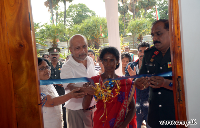 One more house, erected by troops of the 22 Vijayabahu Infantry Regiment (VIR) under command to the 222 Brigade of the 22 Division for a needy family in the general area of Verugal, Trincomalee with the financial assistance of Mr Sarath Yahampath, the donor was vested in the family during a simple ceremony, on Saturday (25).