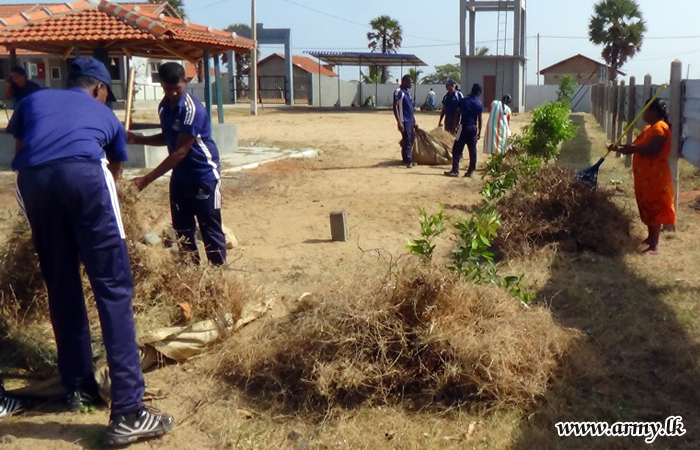 Troops of the 19 (V) Sri Lanka Light Infantry (SLLI) Regiment of the 651 Brigade under the Security Force Headquarters - Kilinochchi (SFHQ – KLN) attended to a ‘Shramadana’ campaign on Wednesday (22) at Thewanpiddi Primary school premises at the request of school authorities.