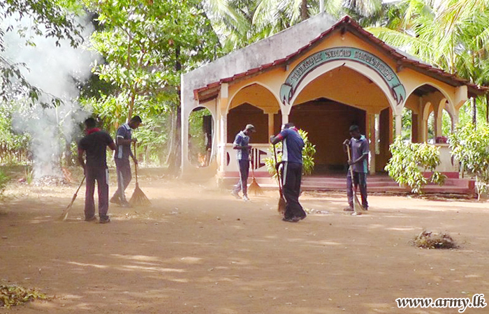 Troops of the 21 (V) Sri Lanka Light Infantry Regiment (SLLI) of the 653 Brigade of the 65 Division under the Security Force Headquarters - Kilinochchi (SFHQ-KLN) cleaned up surroundings around Christian Church premises in Yogapuram West....