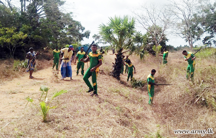 Extending their hand of friendship to uplift living standards of the farming community, troops of the 651 Brigade of the 65 Division under the Security Force Headquarters - Kilinochchi at the request of the Farmers’ Development Association at Kariyalanagapadduvan completely cleaned...