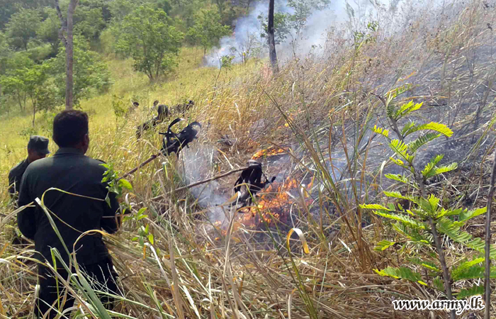 121 Brigade troops of the 12 Division under the Security Force Headquarters - Central (SFHQ-Cen) rose to the occasion a few days ago and doused a bush fire that erupted in the general area of Horombuwa in the Moneragala district on the instructions of Major General Rukmal Dias, Commander, Security Forces – Central (SF-Cen).