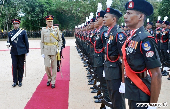 Major General Bhathiya Daulagala was honoured in a Guard Turnout and a Guard of Honour on his promotion on Friday (20) at the Home of Gajaba Regiment, Saliyapura.