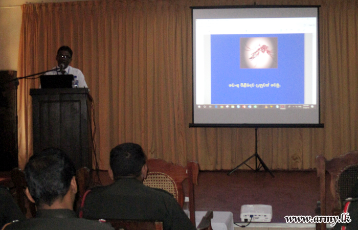 On the direction of Commander Security Force - West (SFHQ-West) Major General Sathyapriya Liyanage a preventing dengue prevention awareness programme was conducted at the 1st Sri Lanka Army Ordnance Corps auditorium at Panagoda on Wednesday (18).