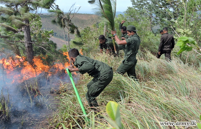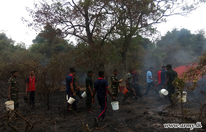 More than 50 Army troops of the Security Force Headquarters – East (SFHQ-E) on Thursday (19) took prompt action to arrest the spread of a wildfire that has erupted in the Somawathiya National Forest Reserve after the incident was brought to the notice of Major General Santhusitha Pananwala, Commander, Security Forces – East.