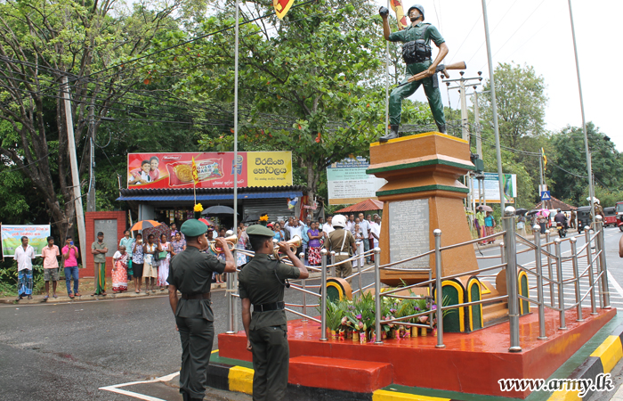 Hasalaka, the native place of the 6 Sri Lanka Sinha Regiment (SLSR) War Hero Corporal Gamini Kularatne who made the supreme sacrifice to defend his camp at Elephant Pass, paid their respects on Monday (16) at Hasalaka Gamini Kularatne statue to coincide with his 27th death anniversary.