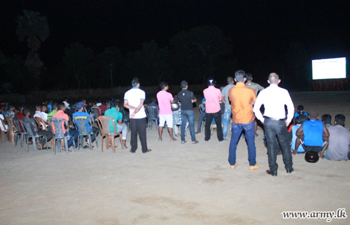 Security Force Headquarter – Kilinochchi with the intention of providing entertainment to the troops and civilians interested in watching the World Cup Football Final (FIFA) on Sunday (15) put up a large LED panel at the Kangapuram stadium area in Kilinochchi.