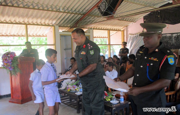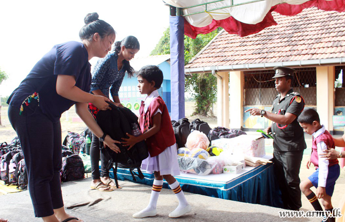 571 Brigade Headquarters with the sponsorship provided by the ‘Youth Outreach Council - Vancouver’ in Canada distributed school items, sports items and office stationaries, worth about Rs 600,000/= among students at Pannakkandi Government Tamil Mixed School at Kilinochchi on Sunday (15).