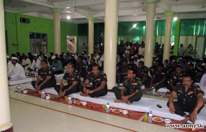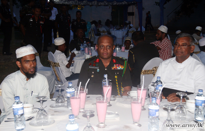 Major General Niyshshanka Ranawana, Commander, Security Force Headquarters - Kilinochchi (SFHQ – KLN) joined Muslims in Kilinochchi area to celebrate ‘Ifthar’, breaking of Ramadan fast, held at Kilinochchi Harmony Centre on Thursday (14).