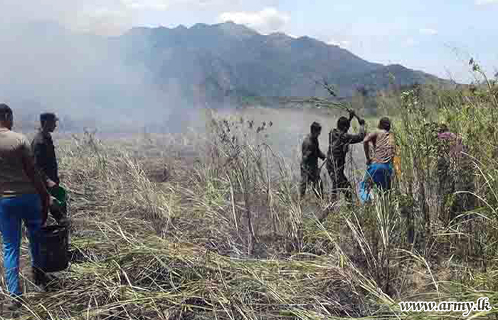 121 Brigade troops of the 12 Division under the Security Force Headquarters - Central (SFHQ-Cen) doused a sudden bush fire occurred in Muppane area in Monaragala District on Friday (15).