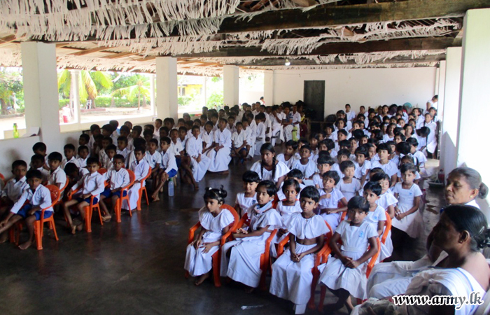 Distribution of much-needed stationeries & school items, worth about Rs 50,000/= among students at Gnanawasa Daham Pasala at Thonigala temple in Thonigala took place during a simple ceremony organized by the 62 Division of the Security Force Headquarters...