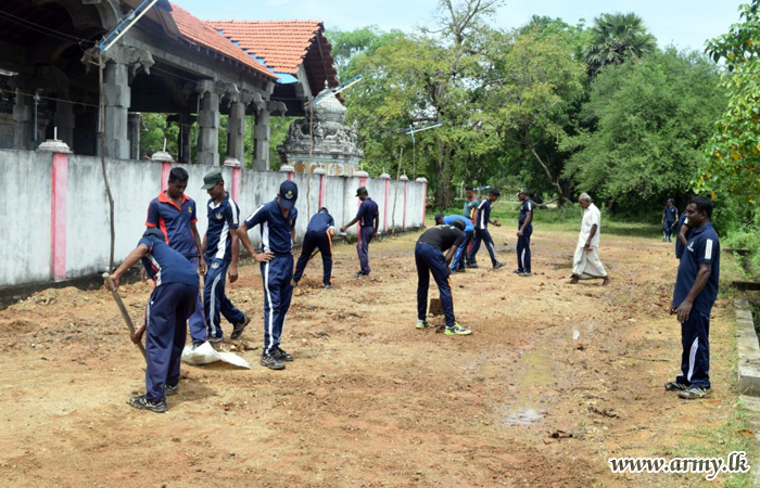 Troops of the 10 Sri Lanka Light Infantry (SLLI) Regiment of the 651 Brigade under the 65 Division organized a ‘Shramadana’ campaign at Waunivilankulam Mari Amman Kovil premises in Kilinochchi on Thursday (24).