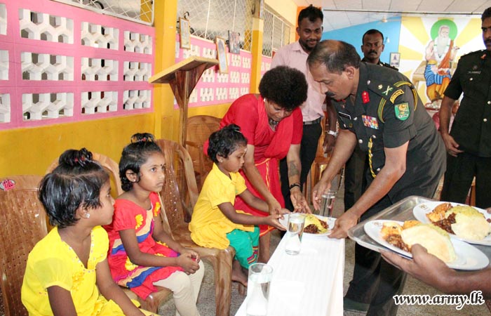 Troops of the 61 Division Headquarters in Vavuniya organized a one more community welfare project to distribute essentials among orphans at Anpakam Hindu Children’s home in Veppankulam, Vavuniya on account of the 10th Anniversary of the 61 Division on Saturday (26).