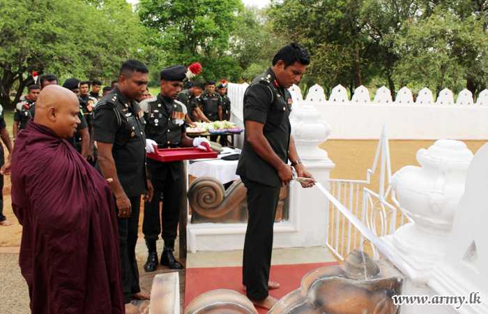 The newly-built Buddhist shrine inside the 3 Sri Lanka Armoured Corps (SLAC) at Kalaththewa in Anuradhapura, a long-felt need in the premises for spiritual purposes was recently opened for veneration amid religious observances in the presence of the newly-appointed Armour Brigade Commander, Brigadier M.K.S Silva.
