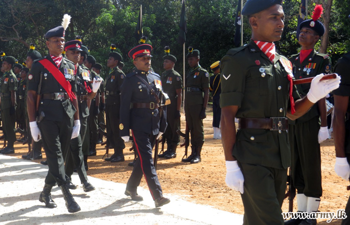 Warrant Officer 1 W.G.P Karunathilake of the 16 Sri Lanka Artillery (SLA) Regiment served as the 59 Division Sergeant Major recently bade a farewell to his military career during a ceremonial parade at the 59 Division Headquarters in Mullaittivu of the Security Force Headquarters – Mullaittivu (SFHQ-MLT).