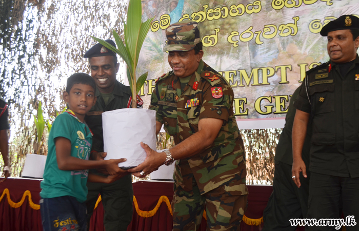 Security Force Headquarters - Jaffna (SFHQ-J) in one more community project initiated a coconut cultivation project by distributing coconut seedlings among custodians of the Vallipuram Kovil and 36 families in the general area of Vallipuram on Saturday (26).