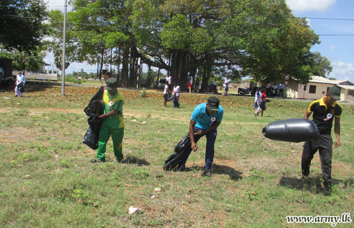 Troops of the 57 Division extended their assistance to clean and make the Kilinochchi Central College Ground for the Athletic meet on 01 May 2018 under the direction of Commander, Security Forces - Kilinochchi, Major General Niyshshanka Ranawana.