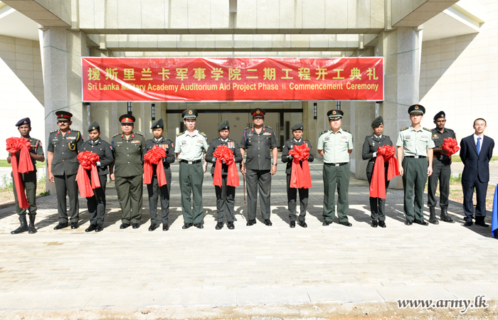 A simple ceremony in accordance with Chinese traditions marked the inauguration of the construction phase II of the Chinese-funded new auditorium complex at Sri Lanka Military Academy (SLMA) on Tuesday (8). Major General Rukmal Dias, Commander, Security Forces - Central (SF-Cen)...........