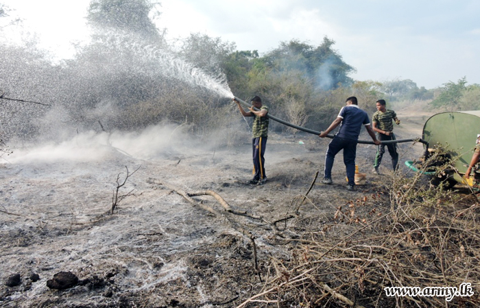 More than 60 Army soldiers effectively doused a raging wildfire in Thadduwan forest reserve in Oddusudan area on Tuesday (1) evening. Troops cordoned the area and simultaneously pruned vulnerable trees and branches around to avoid contact with.....