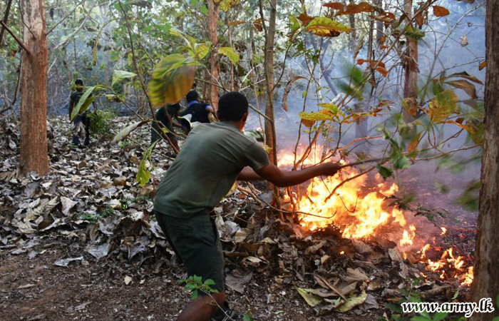 Troops of the 12 Sri Lanka Light Infantry (SLLI) of the Security Force Headquarters - Mullaittivu (SFHQ- MLT), in another instance of community service on Saturday (21) took immediate steps to bring a fast spreading bush-fire under control in the general area of Keppapilaw in Mullaittivu area.
