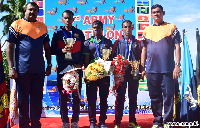 The induction of the Army’s third triathlon championship - 2018, involving Swimming, Cycling and Running simultaneously over various distances continuously took place on Monday (9) on the sea beach at Senigama in Hikkaduwa.