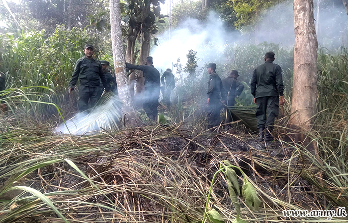 Troops of the 3 (v) Sri Lanka Sinha Regiment of the 112 Infantry Brigade of the 11 Infantry Division under Command to the Security Force HQ-Central doused a fast-spreading bushfire in the general area of Thangamale...