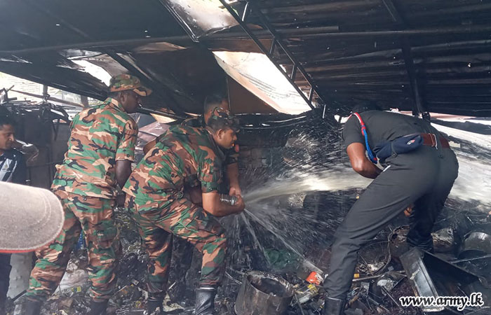 A sudden fire that occurred in a scrap iron shop at Akkaraipattu town area at around 10.30 am on Tuesday (06 June) was brought under control by 11 Sri Lanka National Guard (SLNG) troops with the support of Akkaraipattu Policemen, Salvation Army members and the residents in the area.