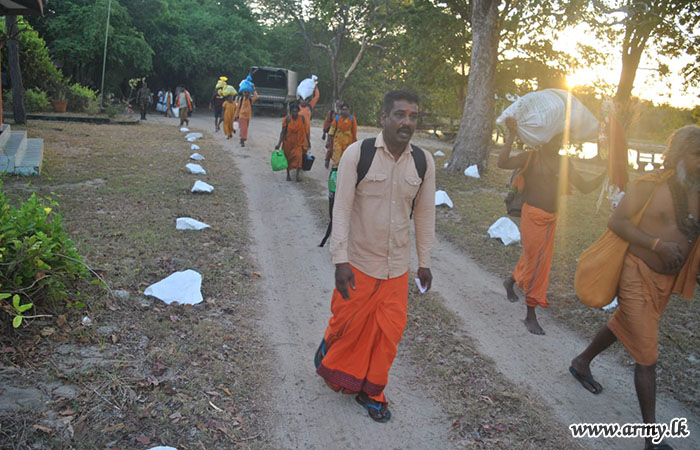 The eastern gates at the entry into the Kumana National Park were opened on Monday (12 June) to facilitate the annual foot pilgrimage (Paada Yathra) of the combined group of Kataragama-bound devotees from the North and East who have been trekking for weeks as a religious ritual and reached the alluring Okanda Devalaya (Ukanthamalai Murugan Kovil) in Okanda, Ampara.