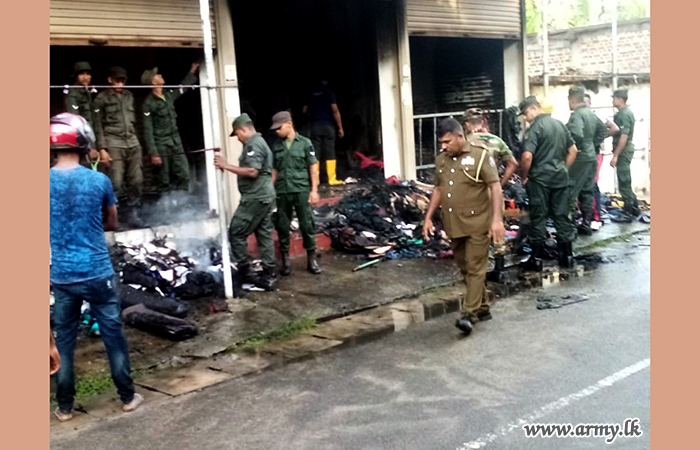 A contingent of Army personnel, belonging to the 8 Sri Lanka National Guard (8 SLNG) under the 242 Infantry Brigade of the 24 Infantry Division of the Security Force Headquarters - East (SFHQ - E) responded to an emergency need around the morning hours on Thursday (March 23) and assisted to extinguish a fire that occurred in a textile shop at Thirukkovil, Thambiliuvil area.