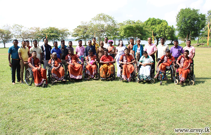 Differently able War Heroes residing at 'Abimansala - 3' wellness resort at Pangolla joined a special ‘Bodhi Pooja’ and a ‘Sil’ programme on account of the Vesak festival on Poya day (May 5).