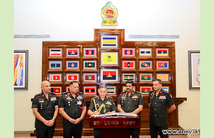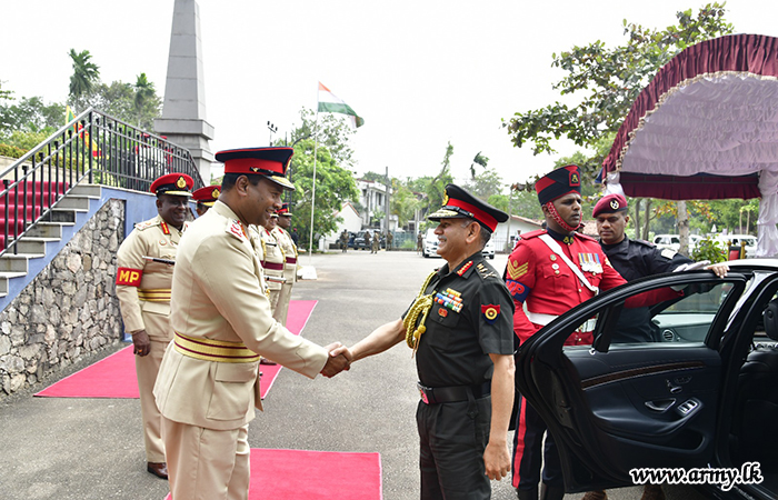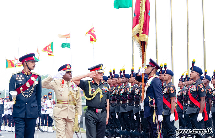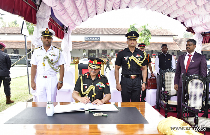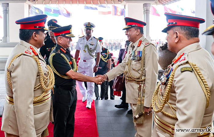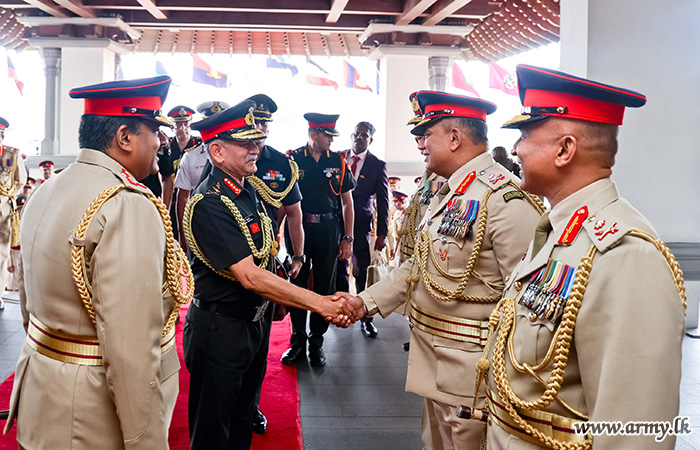 Upon arrival, the COAS was warmly welcomed by Lieutenant General Lasantha Rodrigo RSP ctf-ndu psc IG, Commander of the Army. The visiting COAS was thereafter accorded a ceremonial Guard of Honour according to military customs and traditions.