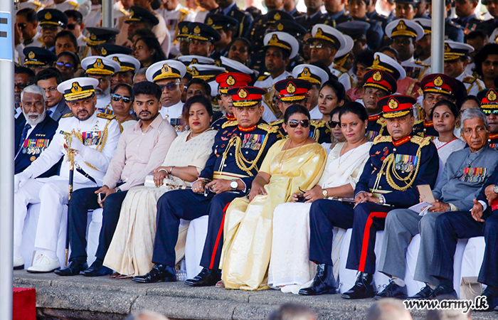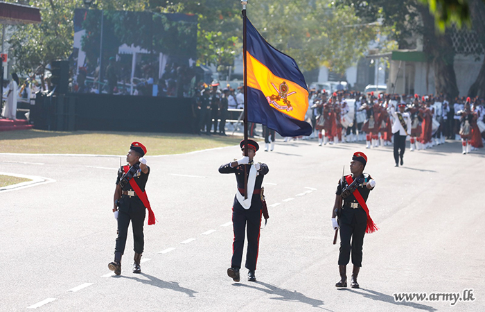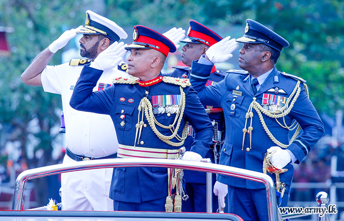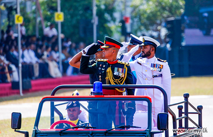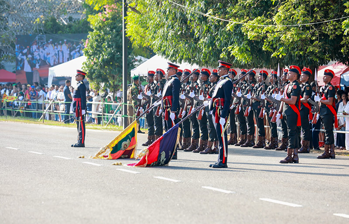 The parade, comprising personnel from 24 regiments of Sri Lanka Army coloured the parade with the participation of Sri Lanka Navy, Sri Lanka Airforce, Sri Lanka Police, Special Task Force (STF), Civil Security Department, National Cadet Corps, as well as retired and serving disabled war heroes, was commanded by Major General K.V.N.P. Premaratne RSP USP nps psc, Commandant of the Sri Lanka Army Volunteer Force and Colonel Commandant of the Regiment of the Sri Lanka Artillery. The parade highlighted Sri Lanka’s military discipline and national pride, with participants saluting the President in accordance with military tradition.