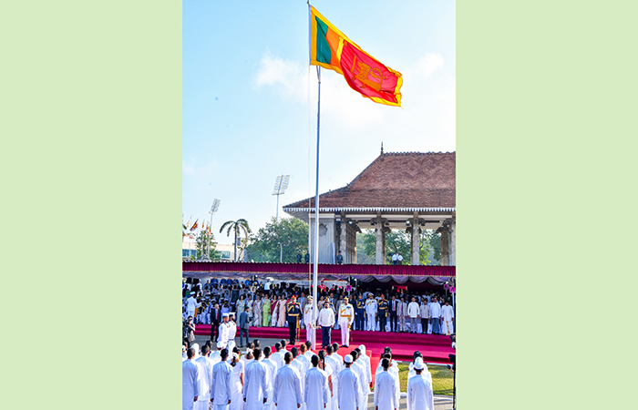 Following the flag hoisting ceremony, the President received blessings through the recital of the ‘Jayamangala Gatha’ and ‘Devo Vassatu Kalena’ by a group of school girls. A two minute silence was observed in remembrance of those who sacrificed their lives to defend the nation’s territorial integrity, including war heroes and patriots.