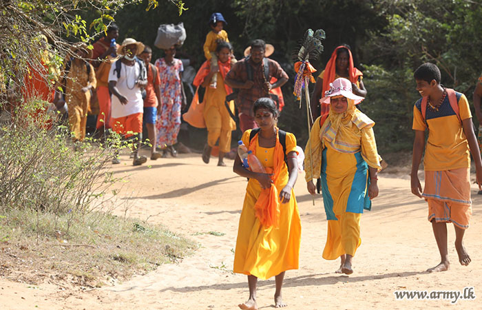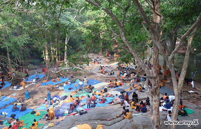 ඒ අනුව කුමන ජාතික වනෝද්‍යානයේ පිවිසුමේ සිට කටගමුව දක්වා යුද්ධ හමුදා සාමාජිකයන් වන්දනාකරුවන්ට ආරක්‍ෂිතව ගමන් කිරීම සඳහා මාර්ගයන් ස්ථාපිත කර ඇති අතර, එම මාර්ගයන්හි ගමන් කරන බැතිමතුන් සඳහා අවශ්‍ය සහයෝගයන් ලබාදෙනු ලබයි. එසේම, වරහන සහ කටගමුවෙහි වෛද්‍ය කඳවුරු පිහිටුවා ඇති අතර, එම වෛද්‍ය කඳවුරුවලින් දිනකට පුද්ගලයින් 3,500 කට වැඩි පිරිසකට ප්‍රතිකාර ලබා දෙනු ලබයි.