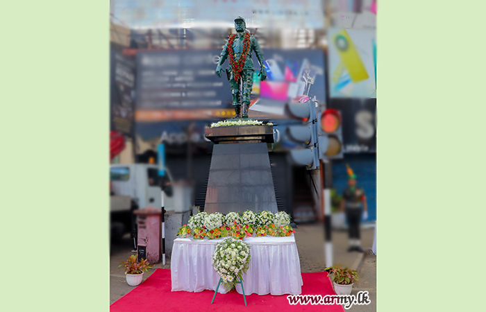 The day commenced with a floral tribute at the late General’s statue in Kiribathgoda by the Colonel of the Regiment, Senior Officers and family members, honouring his distinguished service and sacrifice.