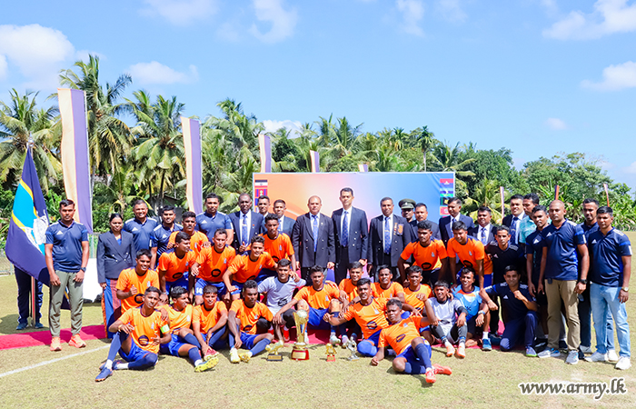 Thereafter, the Commander of the Army presented trophies and certificates to Lance Corporal C.D.I. Fernando of SLAGSC as the Best Goalkeeper, Lance Corporal N.M. Aflal of SLAGSC as the Highest Goal Scorer and Private A.T.C. Fayas of SLAGSC as the Best Player.