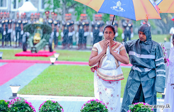 Thereafter, the Commander of the Army, together with the Colonel Commandant of the SLA, Senior Officers, Officers, Other Ranks and family members of the Fallen War Heroes, laid floral wreaths at the monument. The solemn note of the ‘Last Post’ was sounded in tribute to the fallen, followed by the ceremonial dismounting of the vigil.